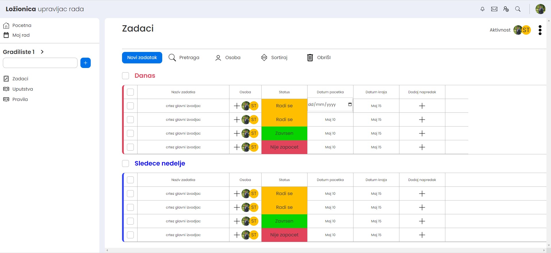 Sistem za deljenje zadataka, praćenje dnevnih nedeljnih i mesečnih zadataka zaposlenih